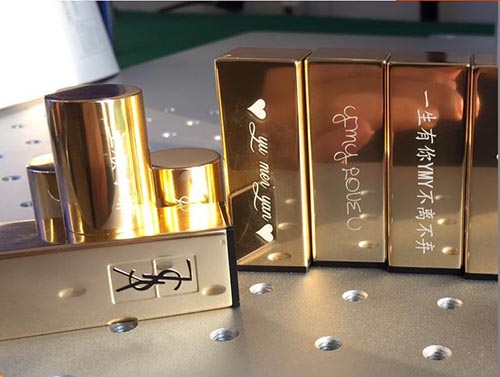 一般的口紅殼logo、圖案都是印上的,容易被涂抹擦掉,這樣的外殼看著也不美觀。激光標記文字圖案就完全沒有這方面問題,激光標記圖案文字清晰,不易磨損,保護品牌形象;激光是無接觸加工,不會對口紅殼造成損壞;電腦制圖,圖形文字不受限制,速度快、精度高。直接賦予口紅更高的檔次,而且支持定制,是極具有珍藏價值的。