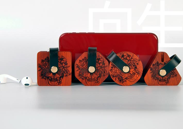 激光雕刻木制、硅膠繞線器,不受形狀、形象設定的限制,激光雕刻機是無接觸加工,對材料沒有機械應力,不會損壞擠壓材料。激光雕刻的繞線器精致美觀,小巧玲瓏,可以簡便工整的將耳機收納其中。