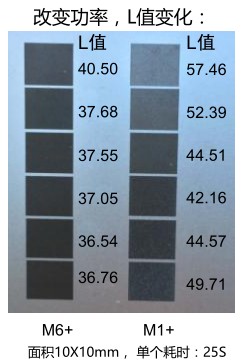 M6+相對于M1+ ,打黑效率更高;可以適應氧化層薄、氧化差的材料;打標效果一致性好。