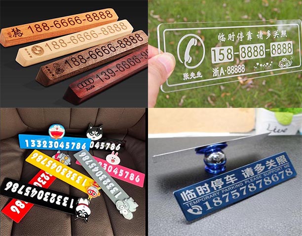 木制、亞克力、金屬等材質停車牌、挪車牌激光雕刻樣品圖