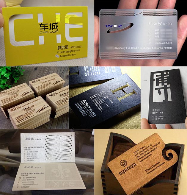 紙質名片、木制名片、不銹鋼名片激光雕刻樣品圖
