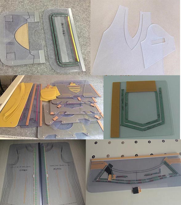 衣領模板、口袋模板、面子模板、里子模板等服裝模板激光切割樣品圖