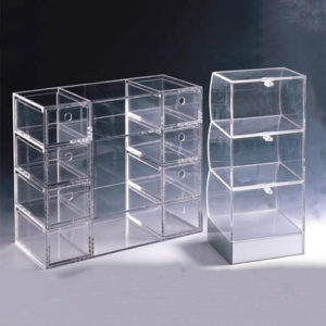 有機玻璃展示柜是利用有機玻璃經過熱壓、鑲嵌、立磨、斷磨、熱煨、雕刻、切割、粘合等方法加工而成的用于商品展示、陳列的貨架。該種展示柜美觀、大方,360度旋轉,能達到非常好的展示效果。該種展示柜已在全世界的商場店鋪得到了廣泛的應用,給銷售商帶來了極大的方便和效益。