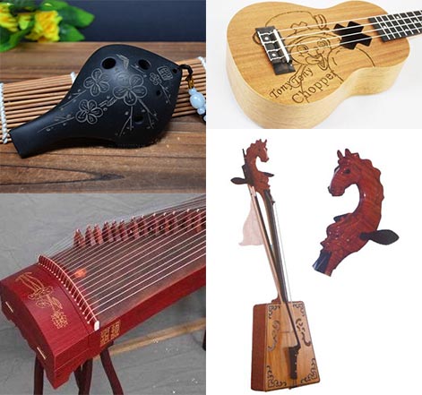 馬頭琴是蒙古民族的代表性樂器,不但在我國(guó)和國(guó)際樂器家族中占有一席之地,也是民間藝人和牧民們喜愛的樂器。古色古香的樂器總是令人賞心悅目,而在激光雕刻下的樂器,打破了傳統(tǒng)樂器的呆滯,保留了傳統(tǒng)樂曲的精髓,更以其精湛的工藝和獨(dú)特的觀賞性得到了大眾的喜愛。
